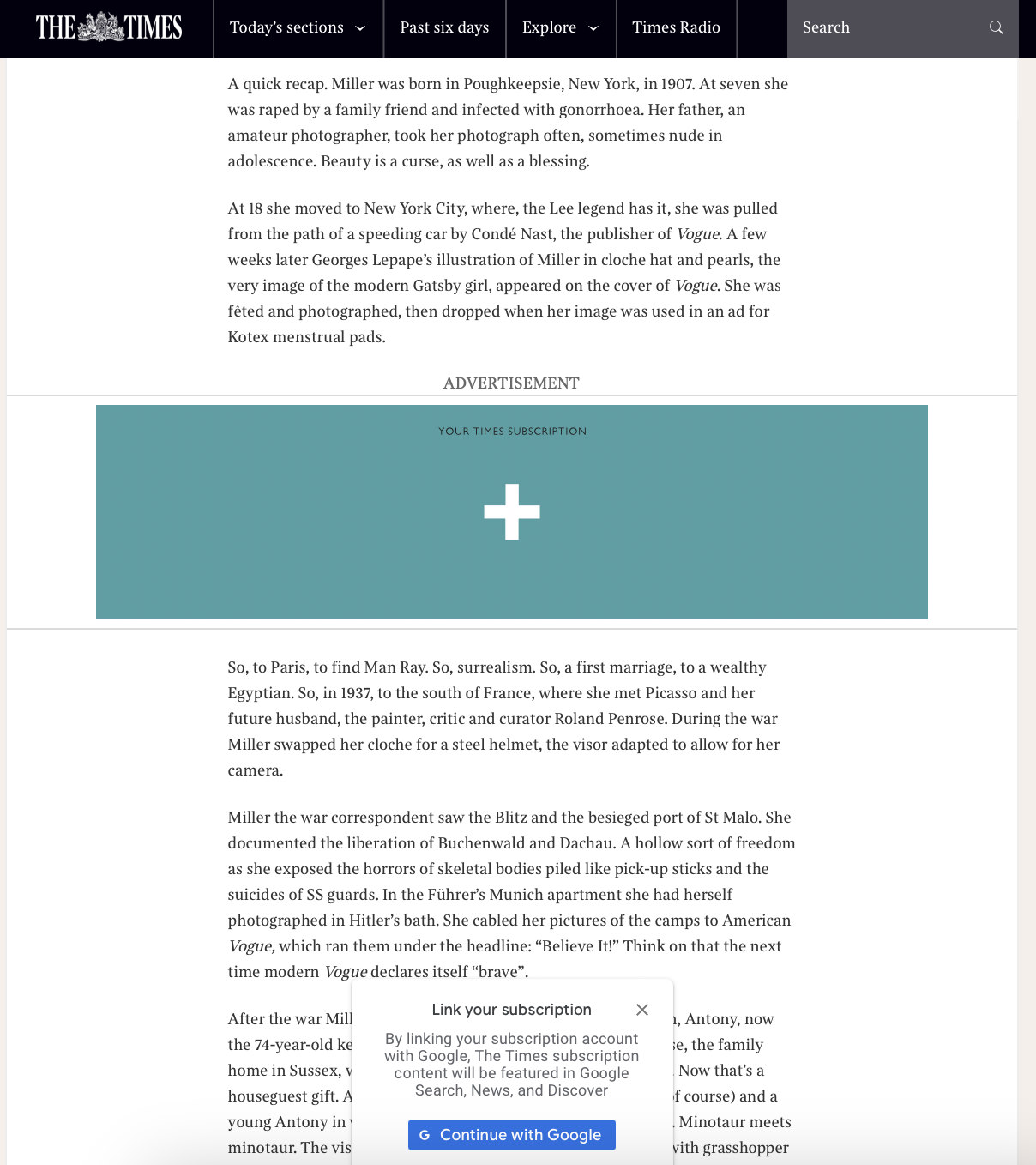 This exhibition chronicles the extraordinary life of Vogue model turned war correspondent Lee Miller, a pioneer Surrealist artist, fashion model, and one of the most daring photojournalists of the 20th century.